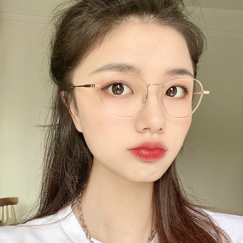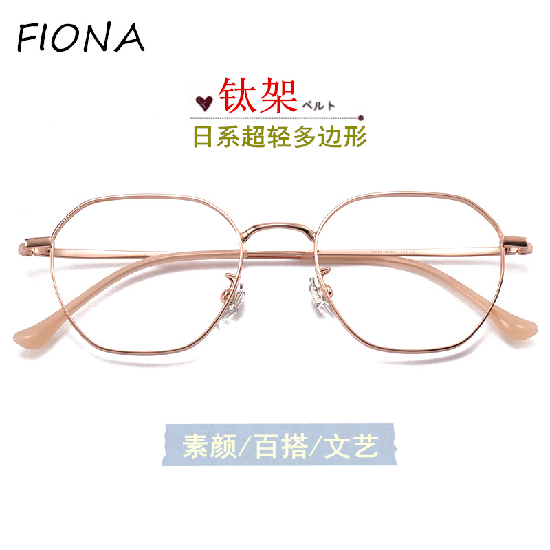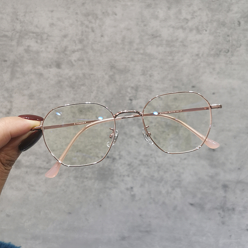 Ultra-light titanium frame myopia glasses frame women's polygon with glasses retro rose gold tide gold wire glasses frame finished product