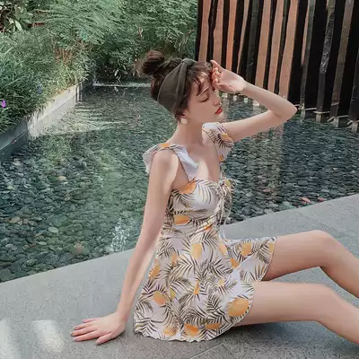 Yimi Shan one-piece swimsuit female fairy fan 2021 New Conservative belly thin fashion hot spring swimsuit