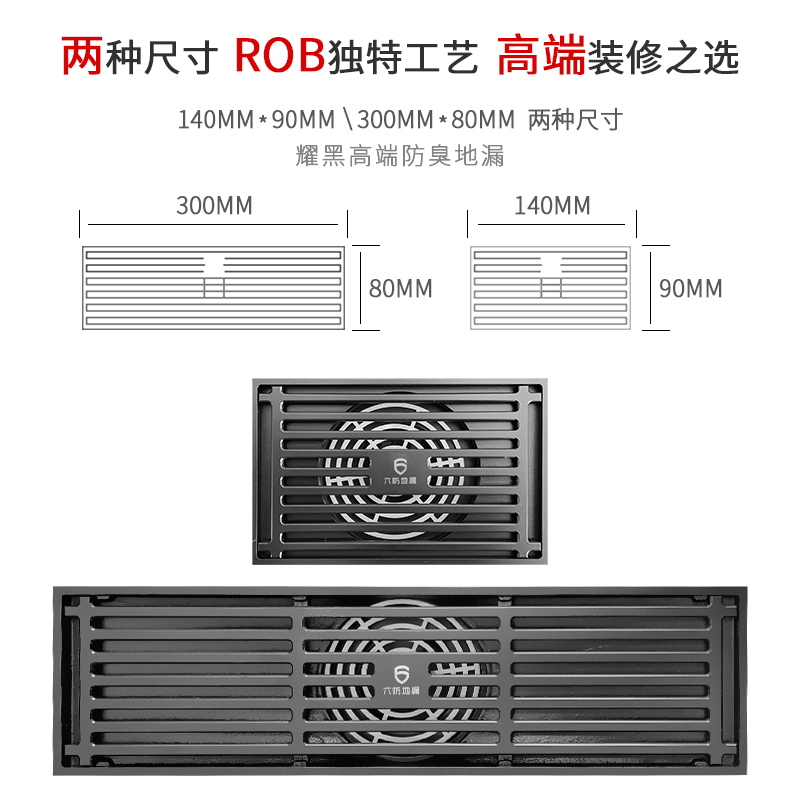 Six-proof new patent black rectangular full copper large displacement shower room floor drain Makeup Room Sewer Deodorant Floor Drain