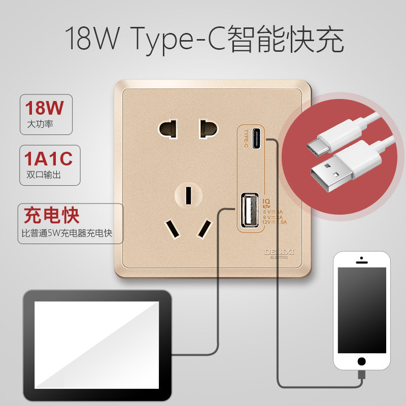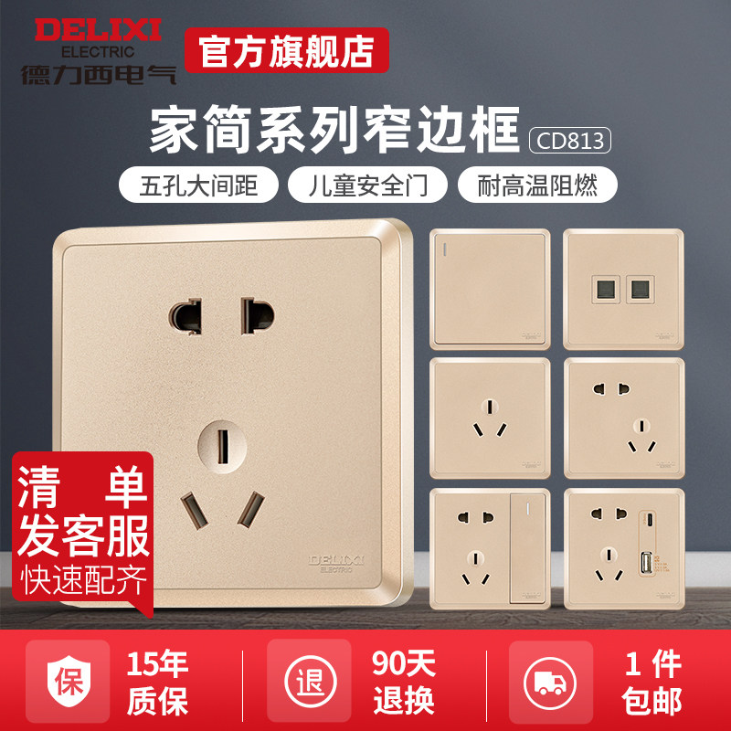 Delixi switch socket panel narrow frame 86 type air conditioning 16a three-hole concealed wall with usb five-hole socket