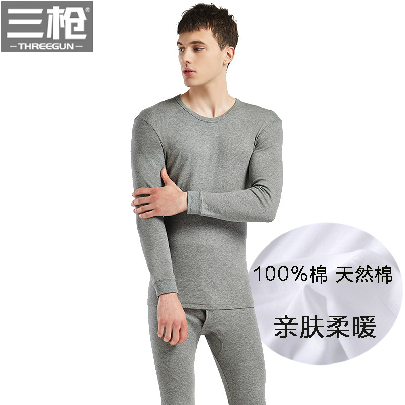 Three - gun warm underwear men and women thin 100 % cotton bottom - collar pure autumn sweater suit