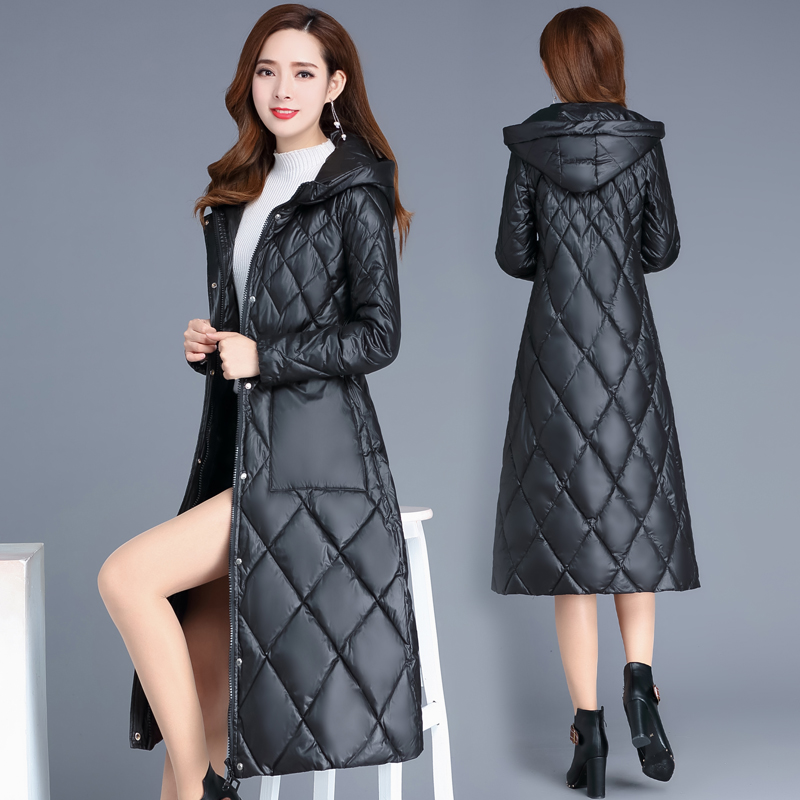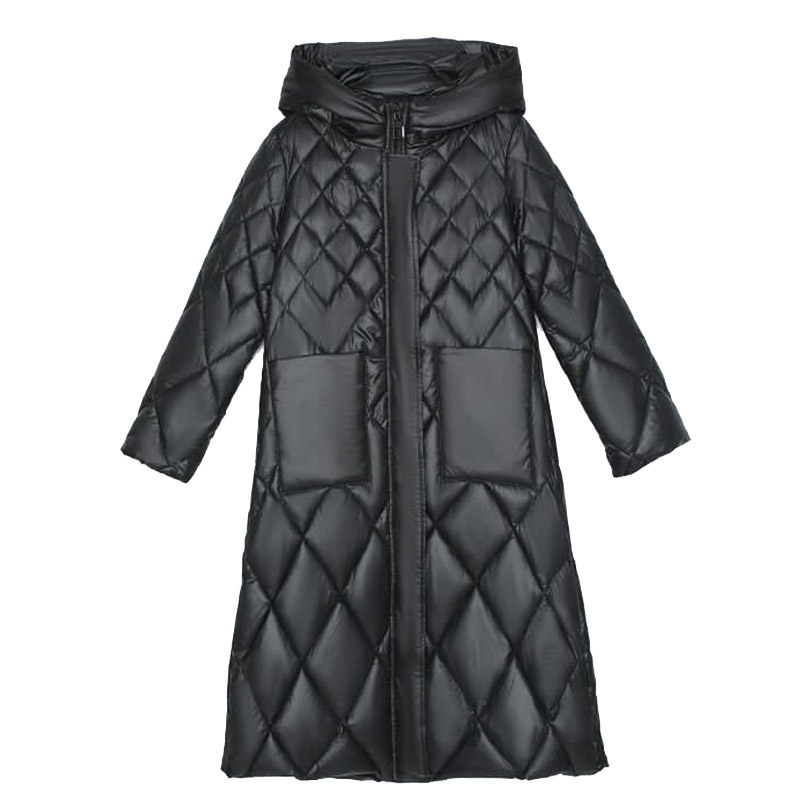 Bright-faced down cotton-padded women's winter 2021 new fashion loose warm hooded knee-length cotton-padded jacket coat