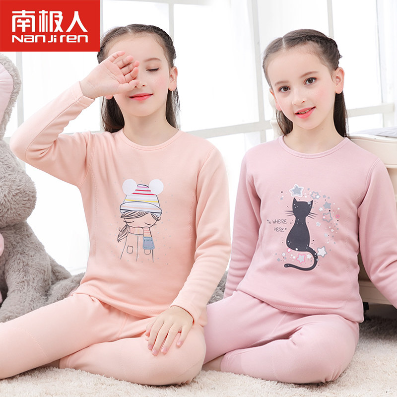 Antarctic girls thermal underwear set children plus velvet padded autumn pants girls winter two-piece big children