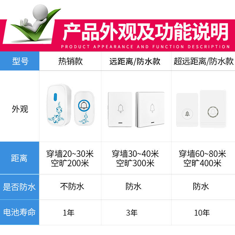 Wireless doorbell home ultra-distance intelligent electronic prompt door Ling one drag two remote control waterproof old man called instrumental