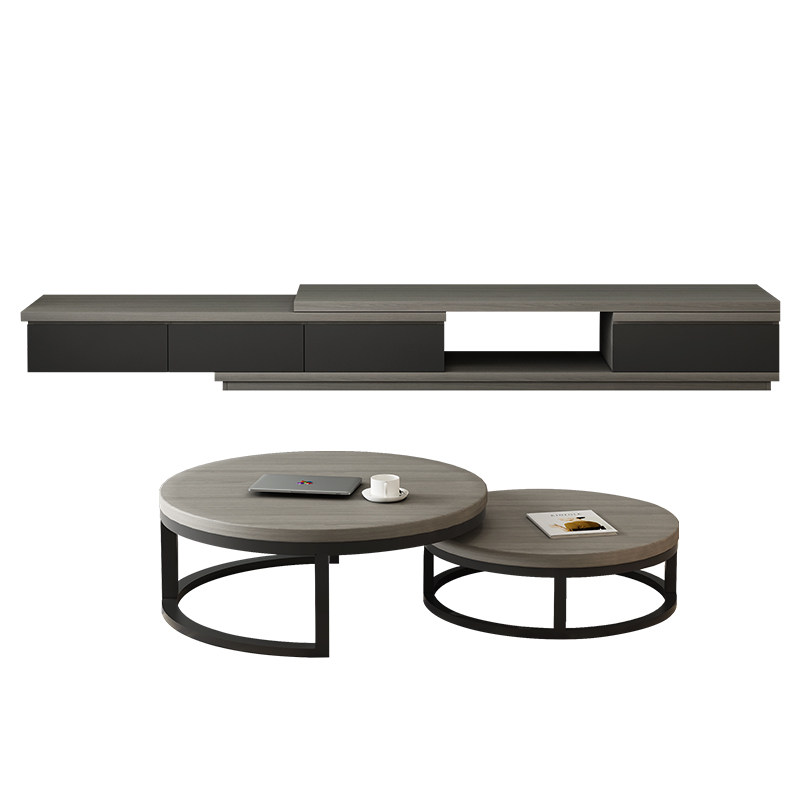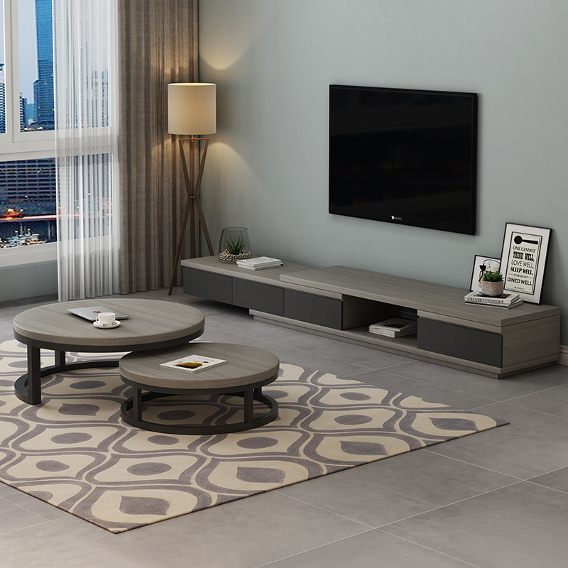 Nordic modern simple size round coffee table retractable TV cabinet floor cabinet small living room combination B02