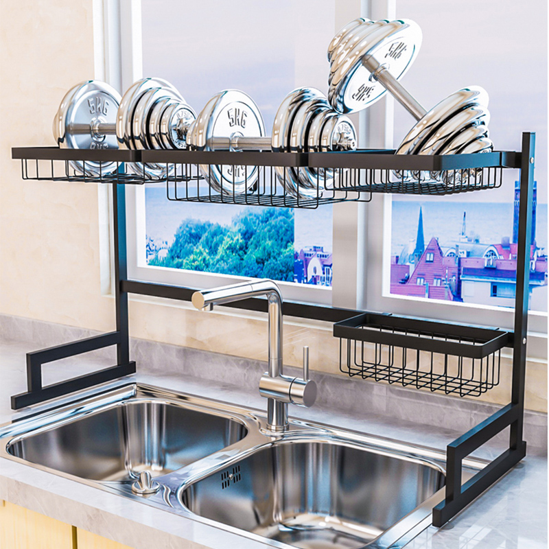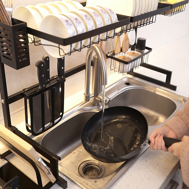 (black single sink 65cm) Bowl Rack Disc Holder Rectangular Basket Knife Holder chopstick cage chopping block (black double sink 79cm) Bowl Rack Dish Rack Vegetable Blue Knife Holder hanging basket chopping block
