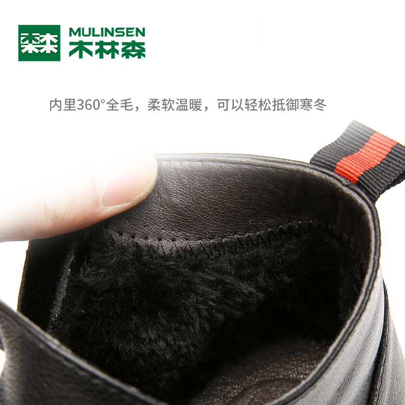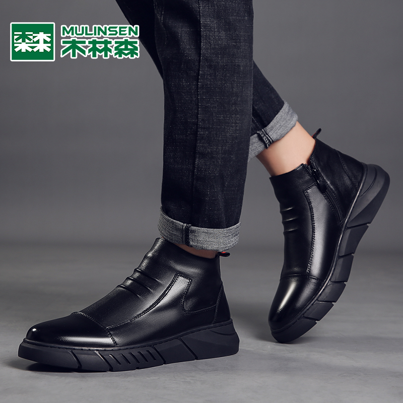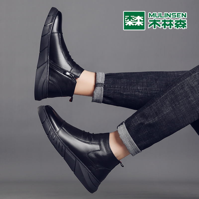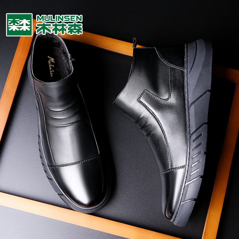 Mulinsen men's leather 2022 winter new velvet cotton shoes men's Martin boots Chelsea boots high-top leather shoes men