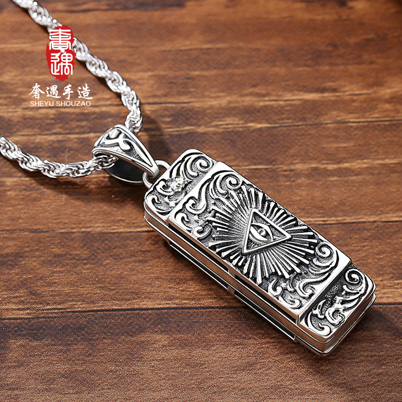 LRER luxury 925 sterling silver cross Horus eye pendant female can play harmonica pendant trendy men necklace