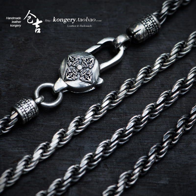 Hami handmade S925 silver necklace for men and women hemp flower chain 100 lap pendant accessories for six words true character Personality Ornament Pendant