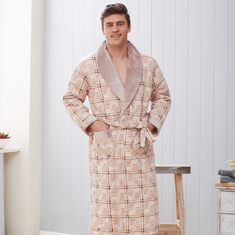 Clip Cotton Sleeping Robe Men Winter Thickened Pure Cotton Clip Cotton Male Bathrobe Gats Add up Code clamping cotton Sleeping robe Long version of male cotton robe