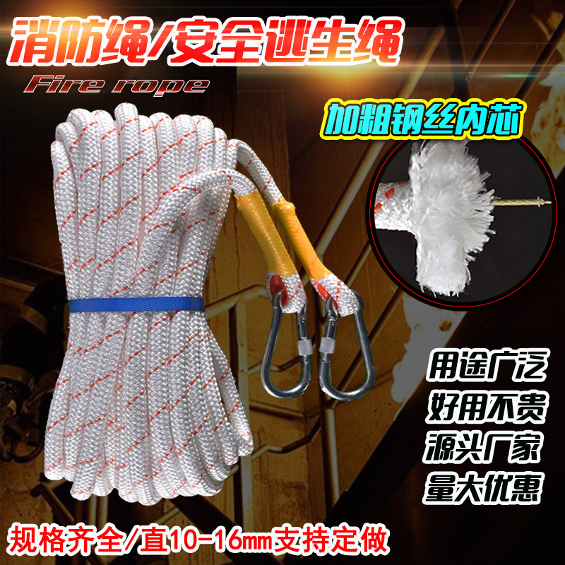 Bold fire escape rope Household steel core safety rope Fire life-saving outdoor climbing rope Nylon rope Wear-resistant