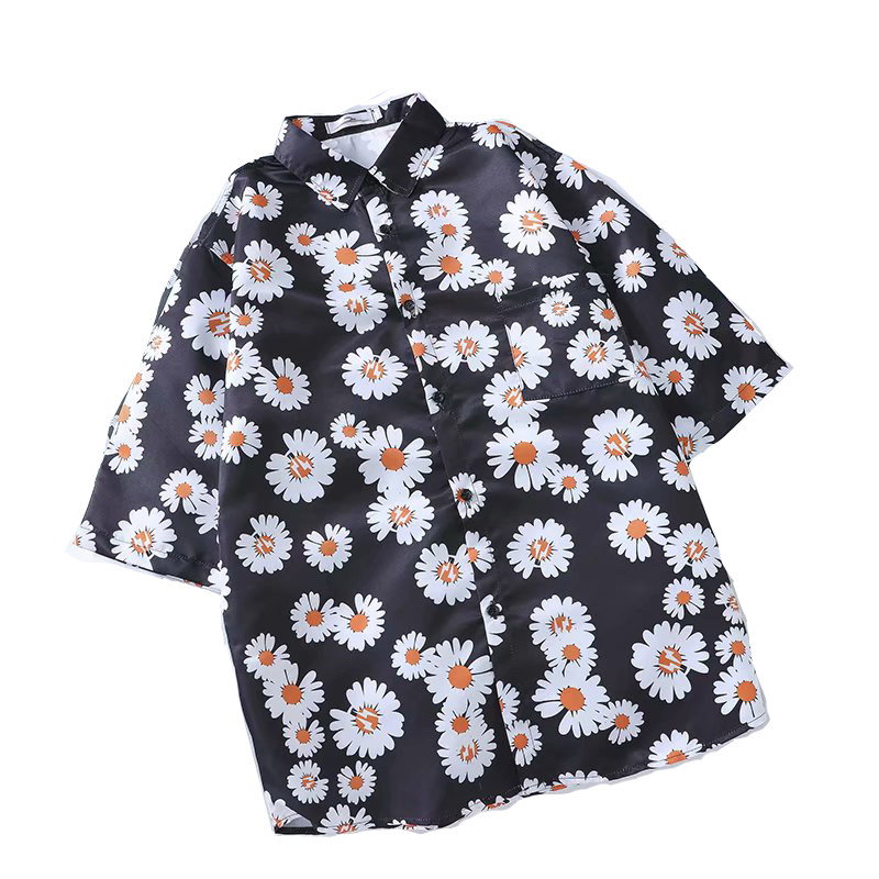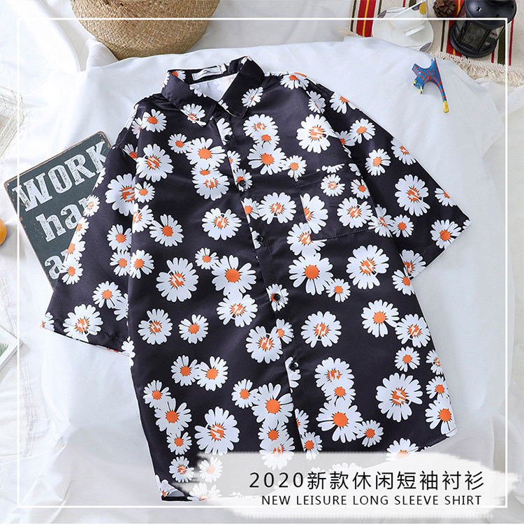 ins super fire short sleeve shirt men 2021 summer wind loose printed flower Han edition casual and blouse students tops