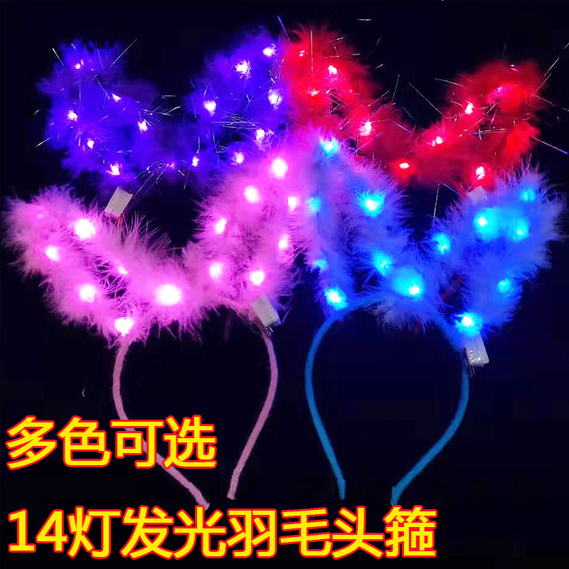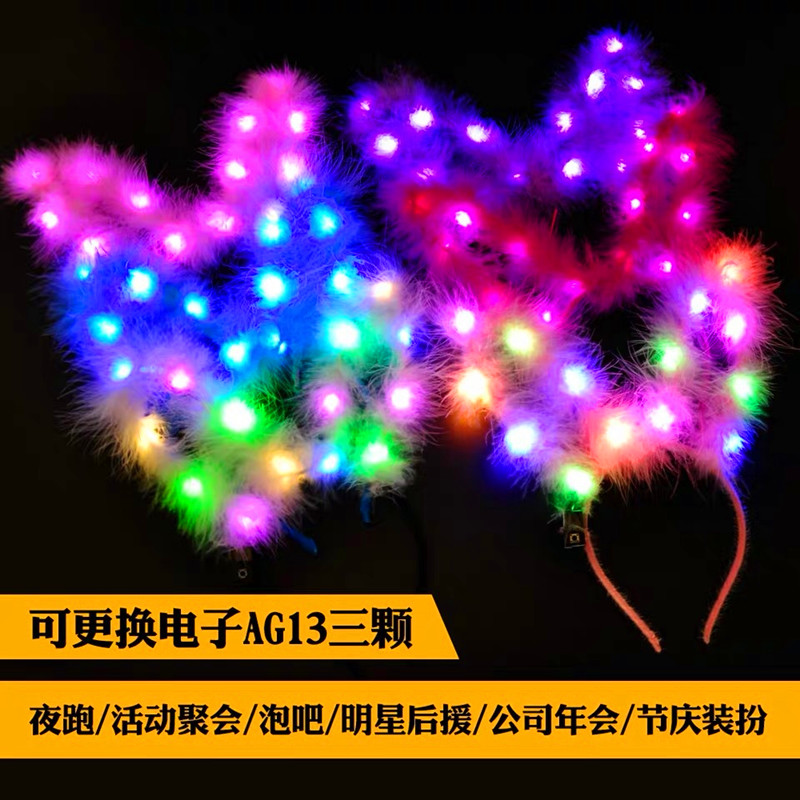 Luminous extended feather Rabbit ear hair band Children's hair ornament Glitter concert hair band party headdress cute props