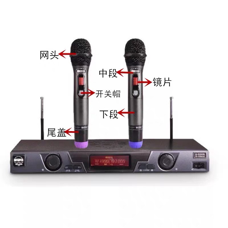 BBS U-555S Wireless microphone Mesh cover Mic core Key switch Lens Microphone kTV maintenance accessories
