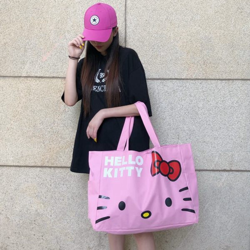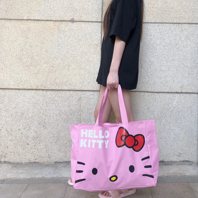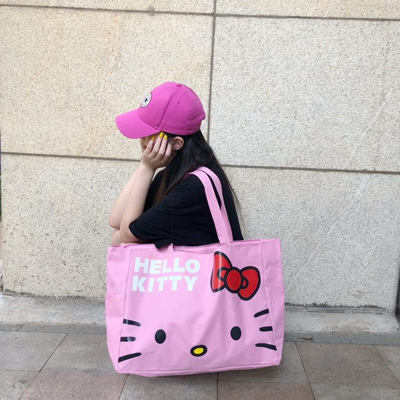 Pink canvas Hello travel bag foldable large capacity waterproof shopping bag portable shopping bag storage bag