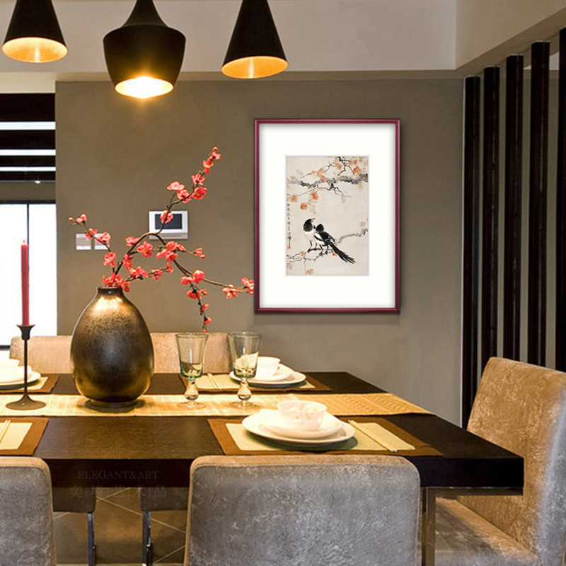 New Chinese Decorative Painting Dining Room Bookhouse Hanging Painting Xuanguan Mural Paintings of the magpie flower bird country painting Xu Beihong Shuangxi Tutu