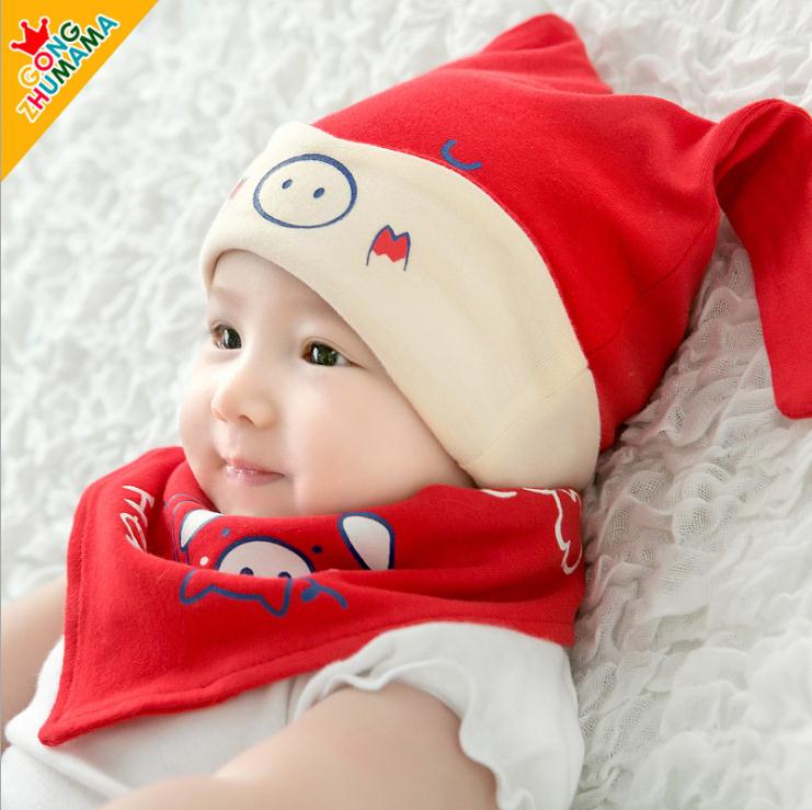 Newborn baby spring autumn thinly large red pure cotton hat surrounding pocket suit baby cute and soft sleeping hat baby hat Meng