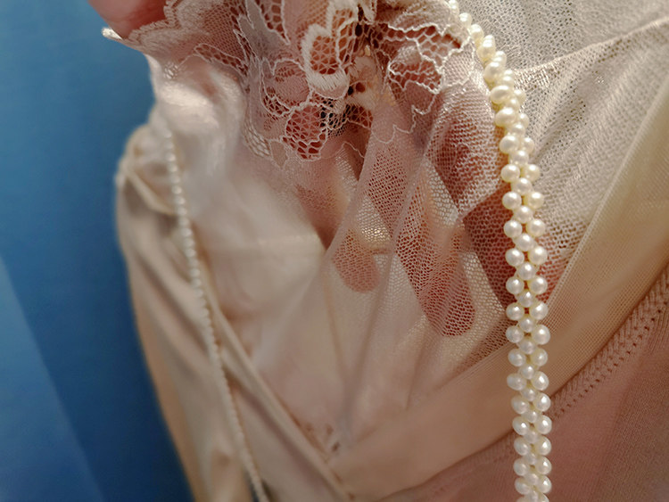"Night with roses" swan neck lace high neck bamboo fiber heat jacket boutique is not an ordinary look