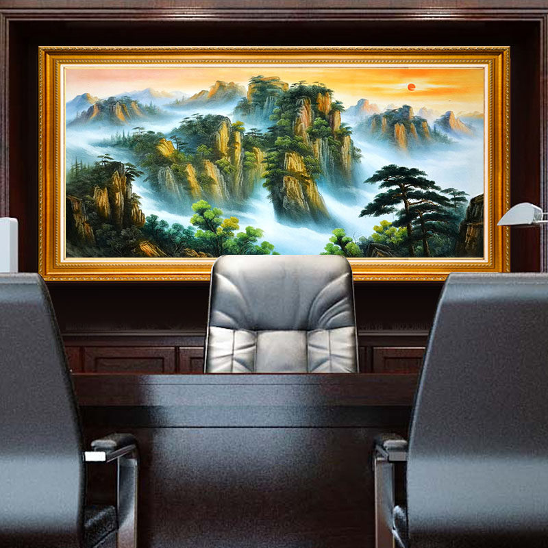 New Pint Hand Painted Landscape Oil Painting Back With Mountain Taishan Pure Handmade Living Room Office Landscape Leaning Mountain Plot