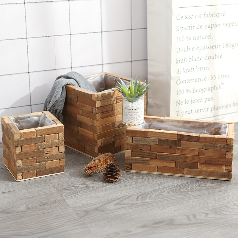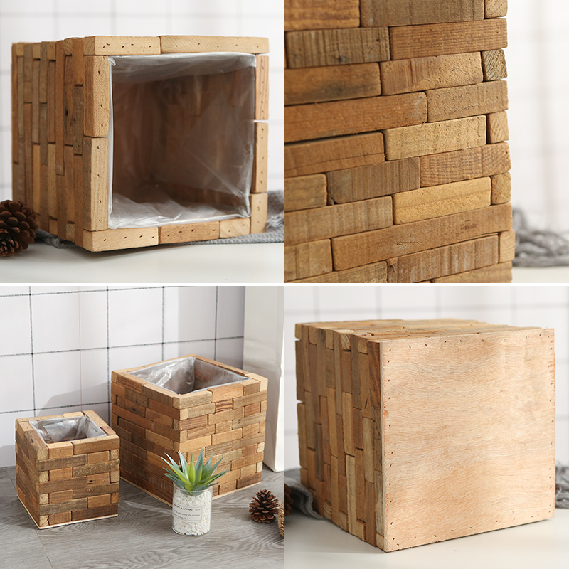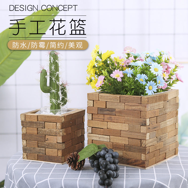 Creative Carbonated Wood Embalming Wood Flowerpots Long Hair-shaped Square Multi-meat Real Wood Wood Wood Flowerpots Minimalist decoration