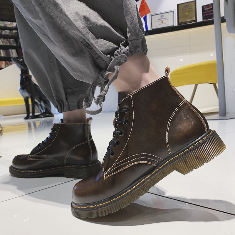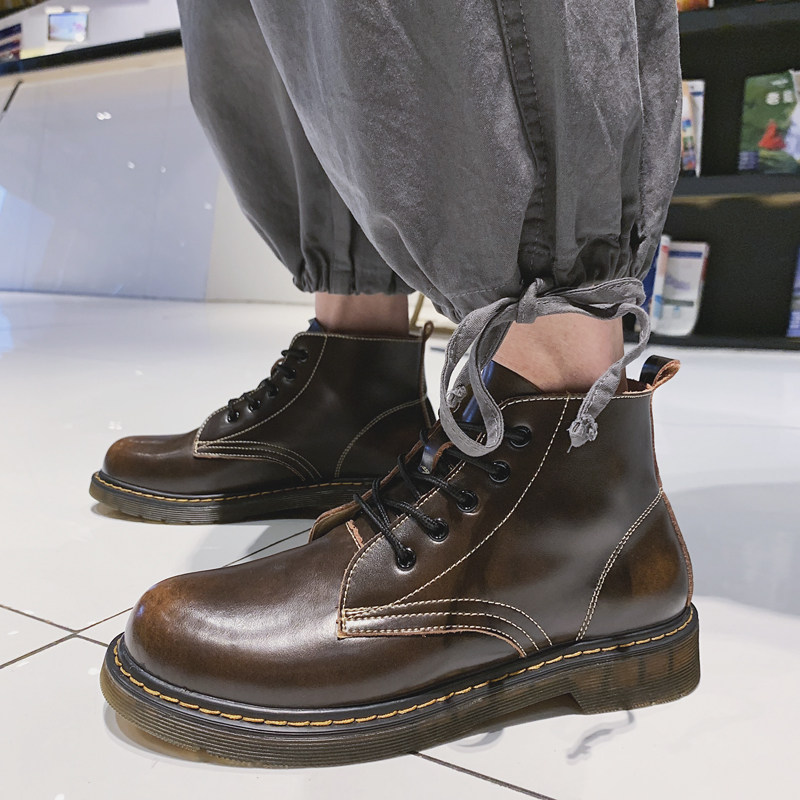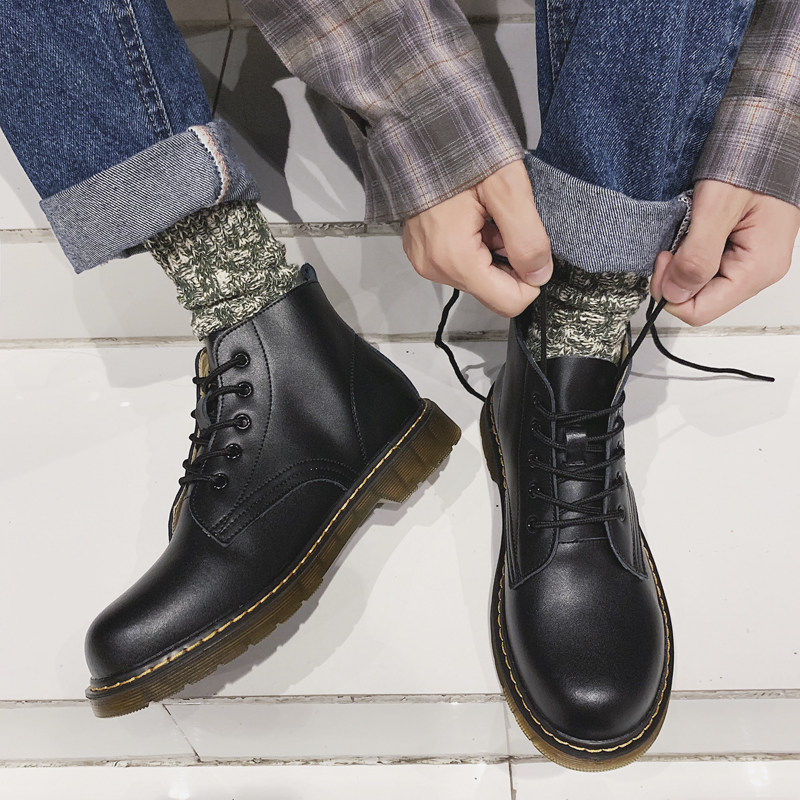 Black Martin Boots Man Genuine Leather High Cylinder Leather Shoes men's Han version 100 lap Inn wind middle cylinder tooling boots male wave shoes