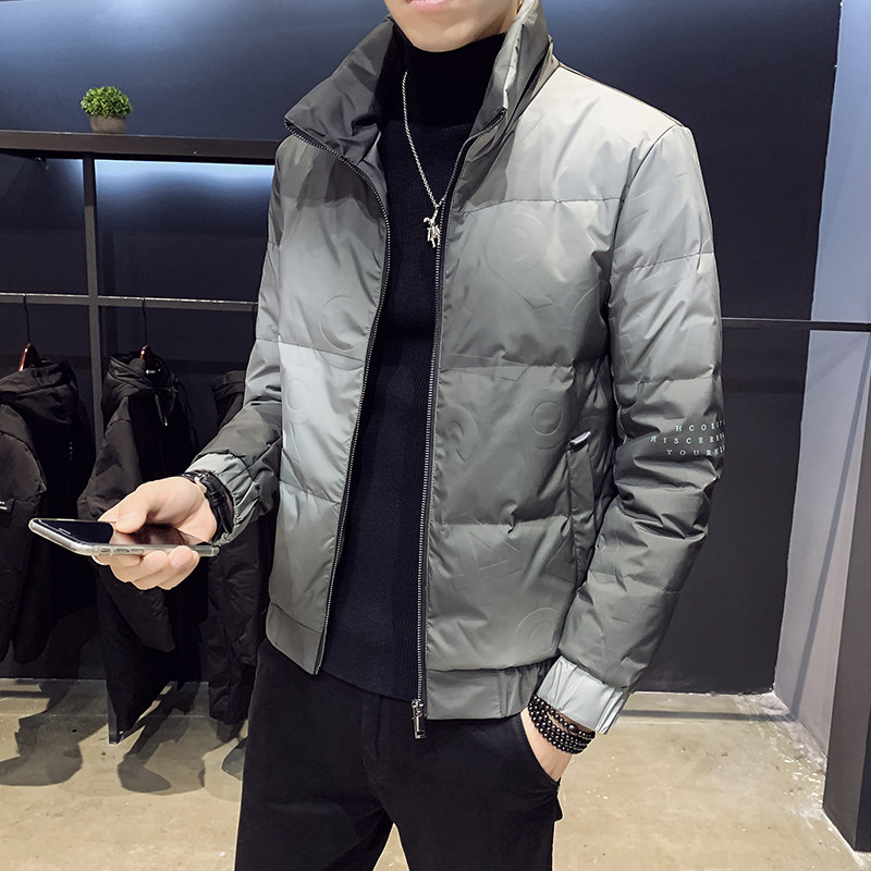 Winter down jacket men's 2021 new short trend thin men's clothing thickened handsome men's gradient jacket tide brand