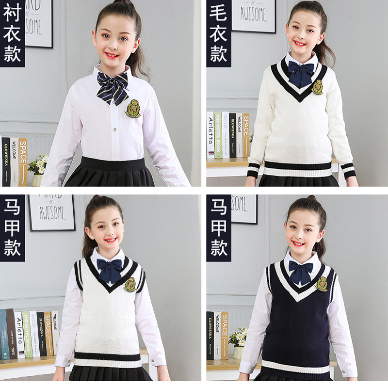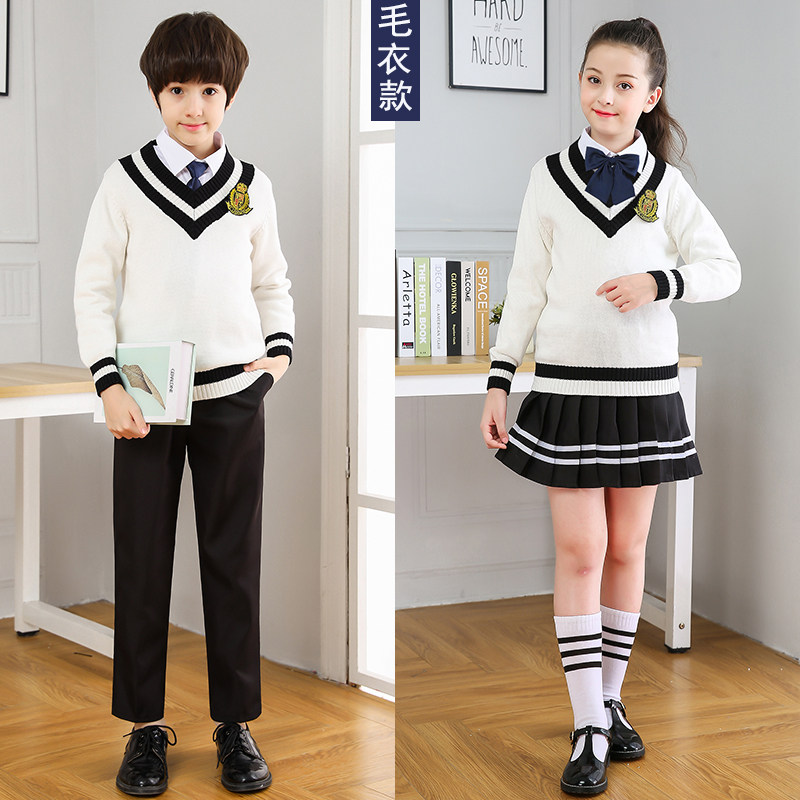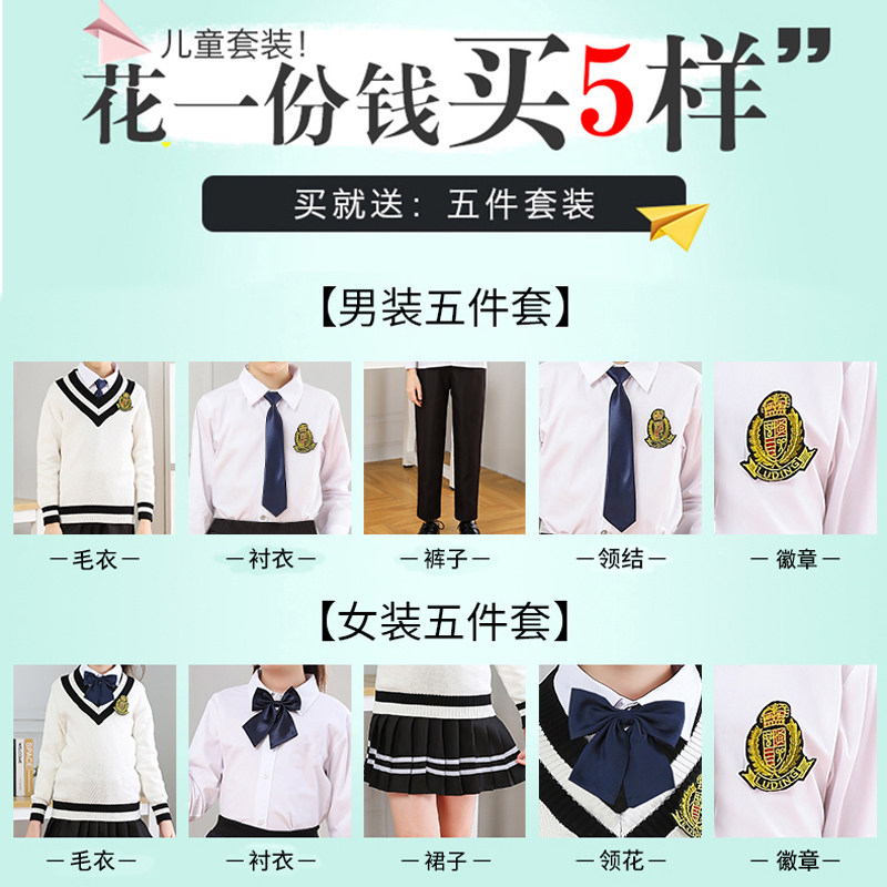 Elementary school uniforms kindergarten garden uniforms class uniforms British holding baby bag pants suit three-piece costumes children's chorus clothes
