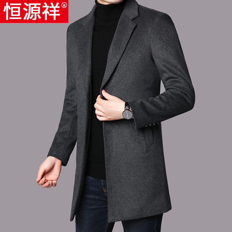Hengyuanxiang men's wool woolen coat mid-length casual plush coat men's lapel autumn and winter thick windbreaker