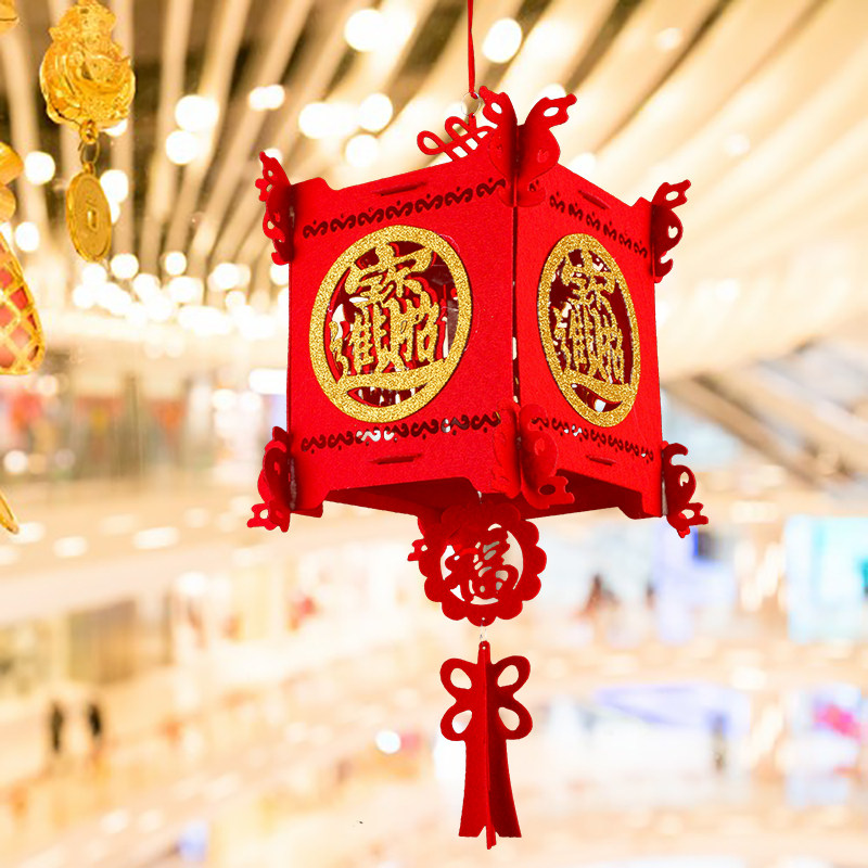 Chinese wind small lantern hanging decoration kindergarten indoor balcony a pair of decorations for Spring Festival New Year Children's handmade palace lamp