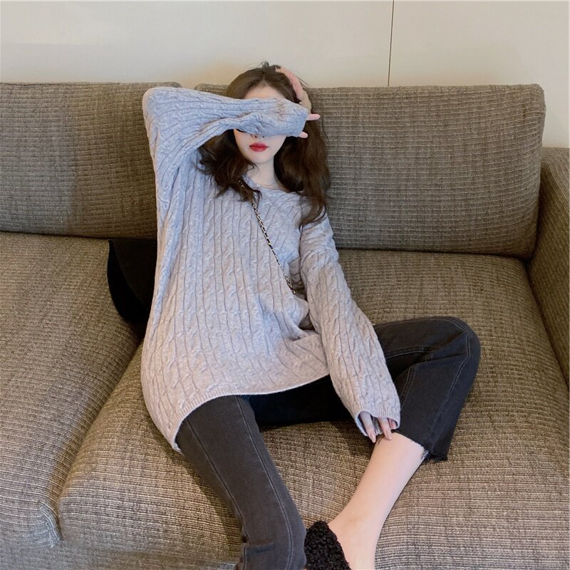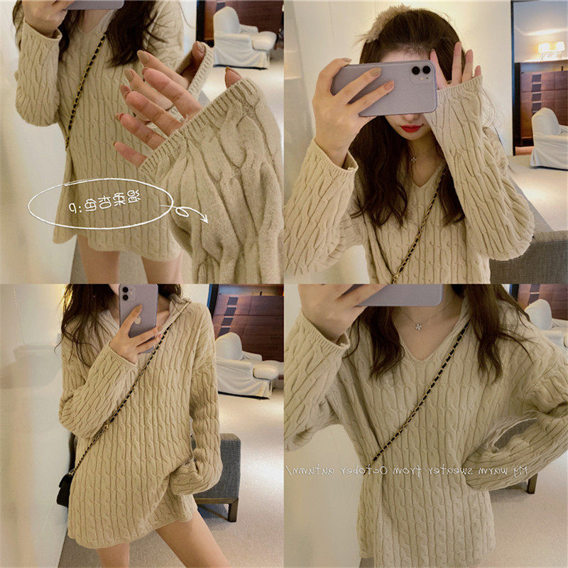 Hooded Twist Thick Line Sweater Women's Sweet Outerwear Autumn and Winter 2023 New Lazy Wind Mid-length Knitted Dress
