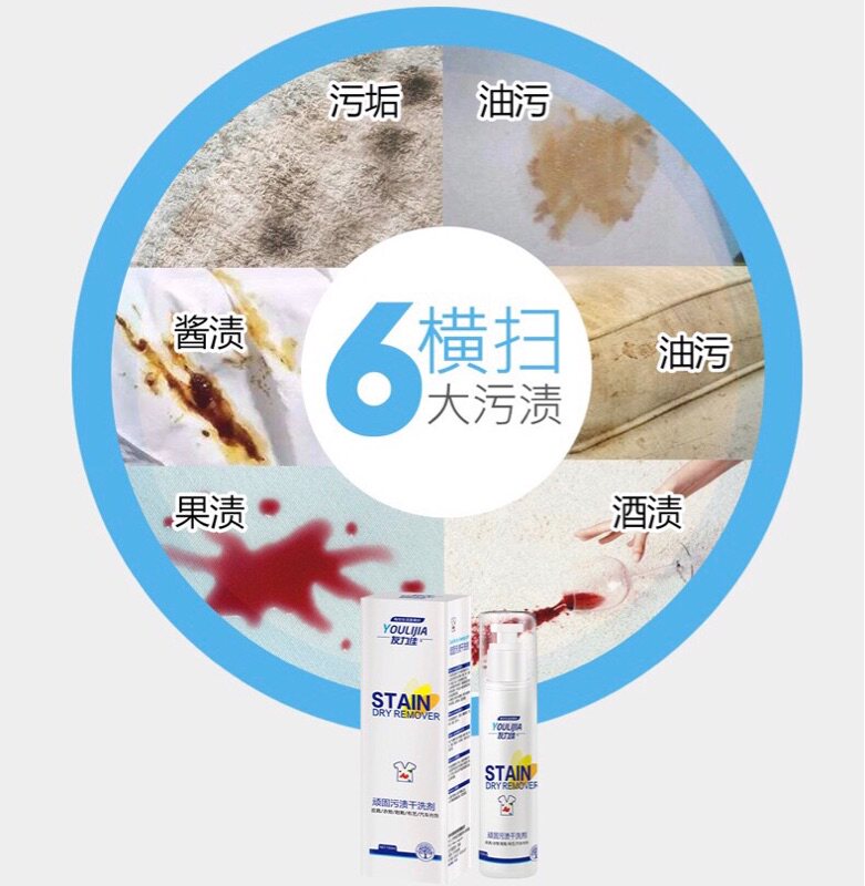 2 bottles of Youlijia stubborn stain dry cleaner clothing cleaner home car decoration free water spray decontamination agent