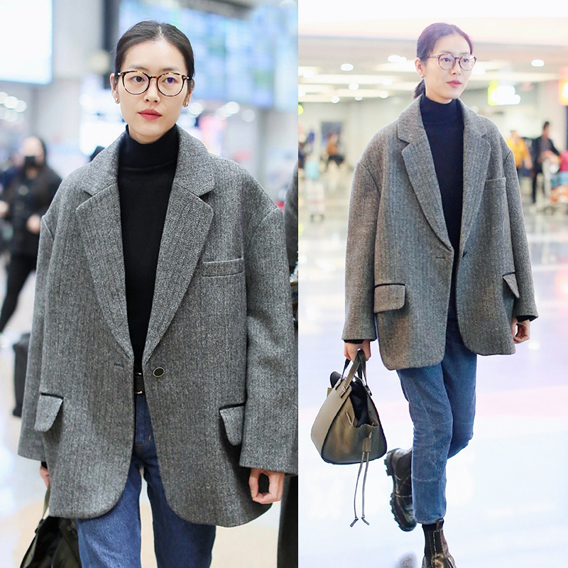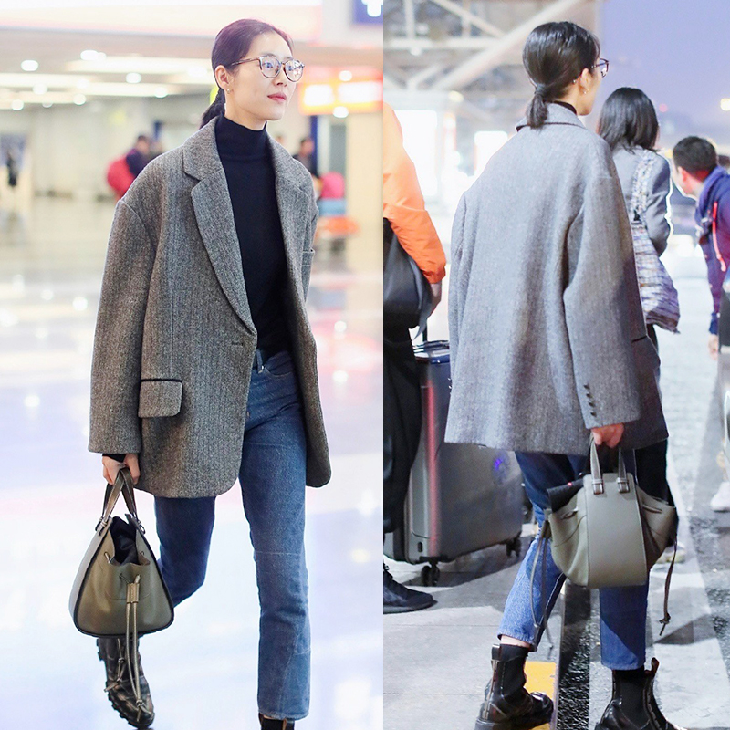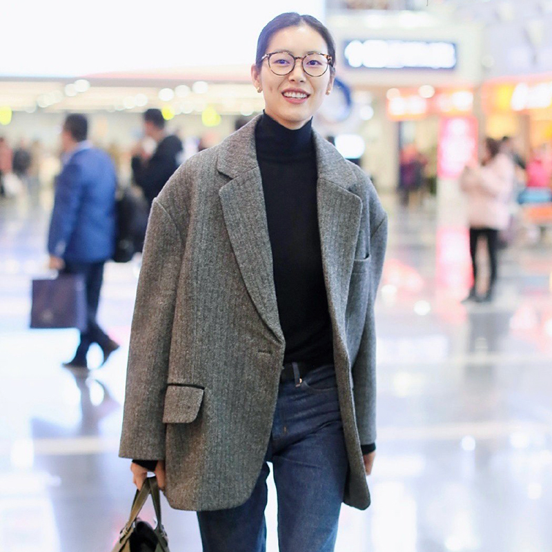 2022 autumn new Liu Wen same style oversize loose suit woolen coat lazy style loose shoulder suit outside