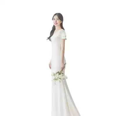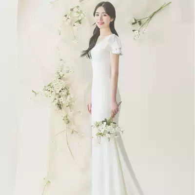Light wedding dress 2021 new bride simple slim body tailing long version wedding party Evening Dress tour autumn and winter