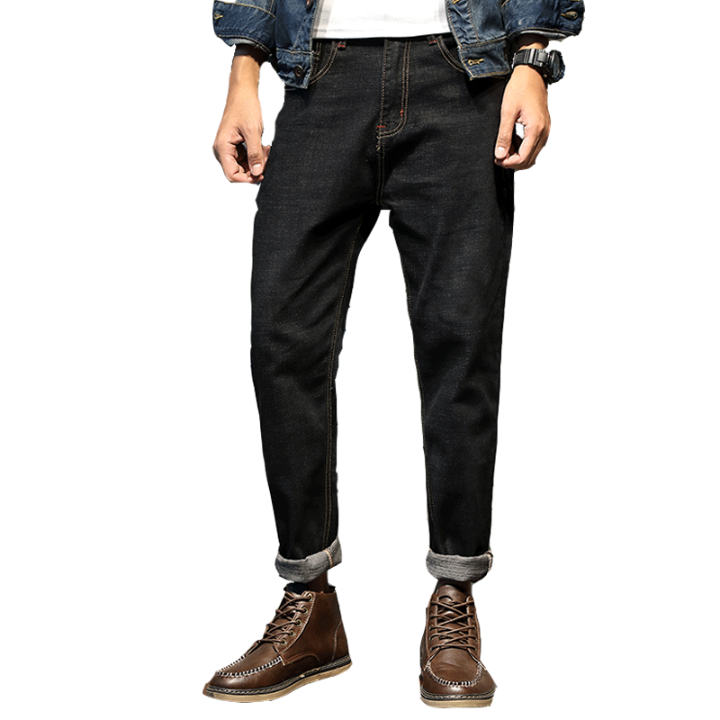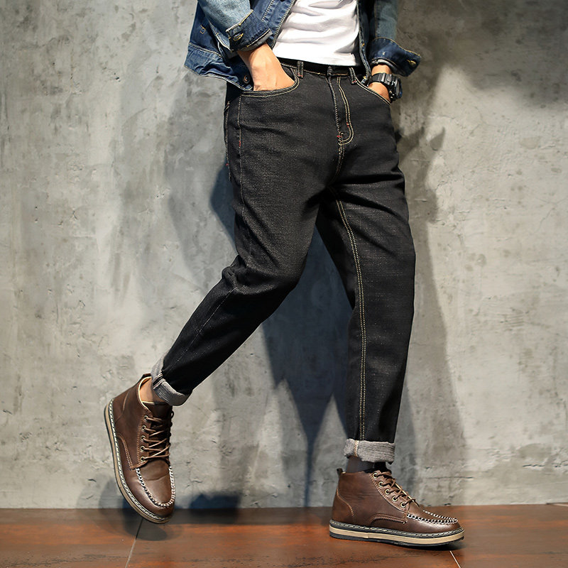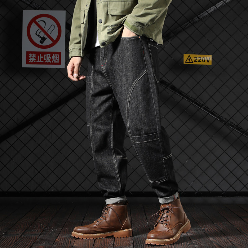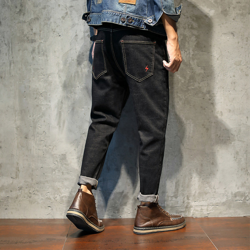 Autumn lightning embroidery jeans men's ruffian handsome straight loose red ear denim work trousers with Martin boots
