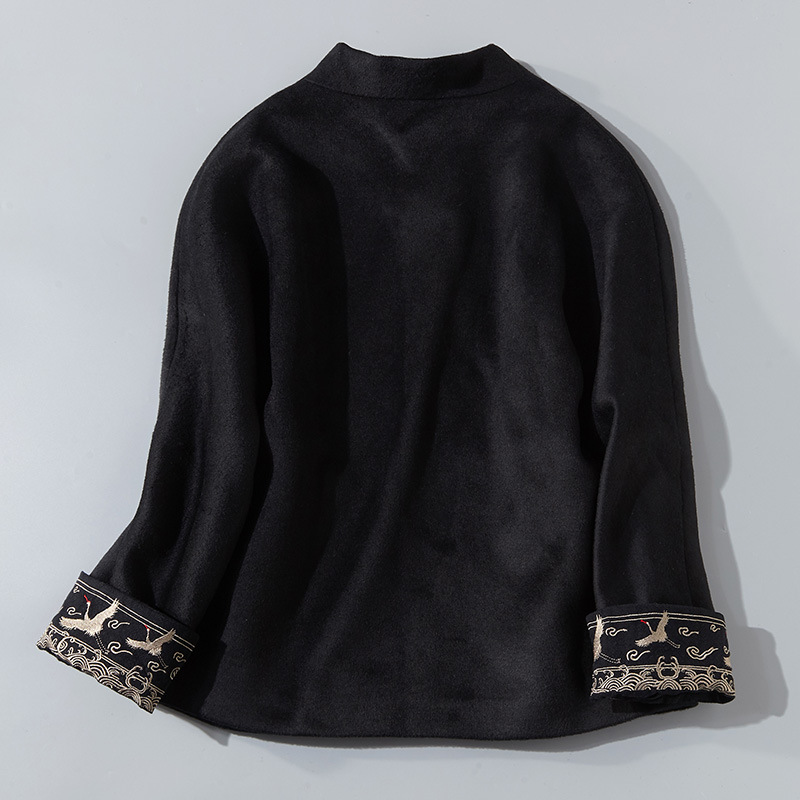 Autumn/winter Zen Serie Nationale sweatshirt Buddha lacing blouse fur coat embroidery flowers black Zen suit tea suit women's clothes