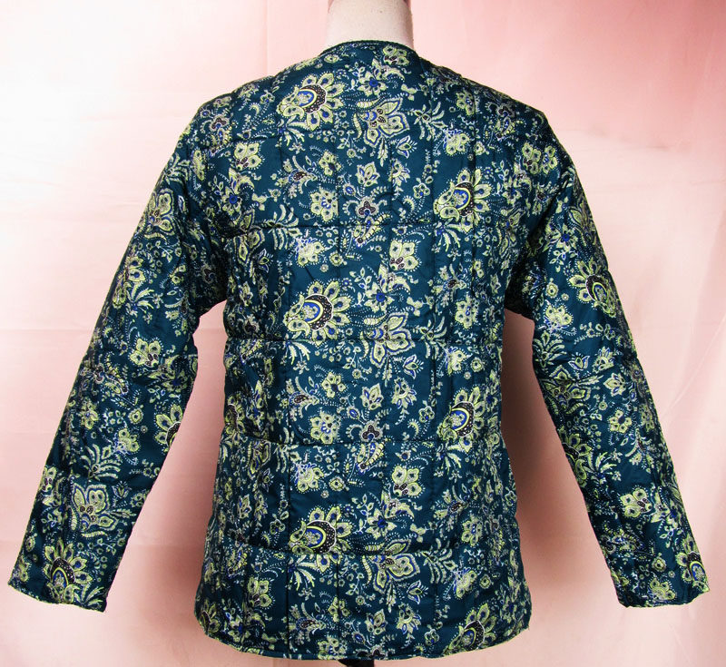 Clear Cabin Small Cotton Clog Ink Green Color Dress Inside Wearing Short middle aged small cotton padded jacket No collar Autumn Winter Thin Cotton Clothing