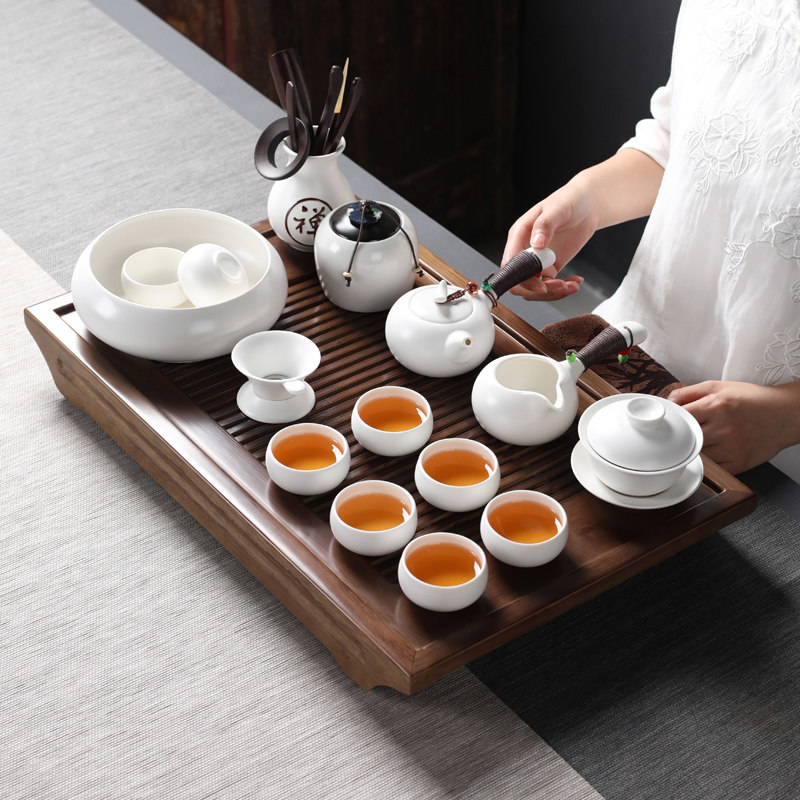 White Porcelain Tea Tea Set Ceramic Utilita Tea Tray Tea Tray Full Set Cover Bowl Teapot Tea Cup Home Brief Tea Maker-Taobao