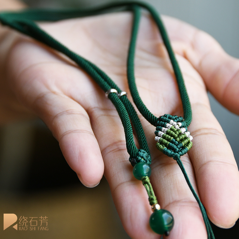 New original pendant cord ink green hand weaving soft and adjustable and Tian Yuhon wax temperament rope
