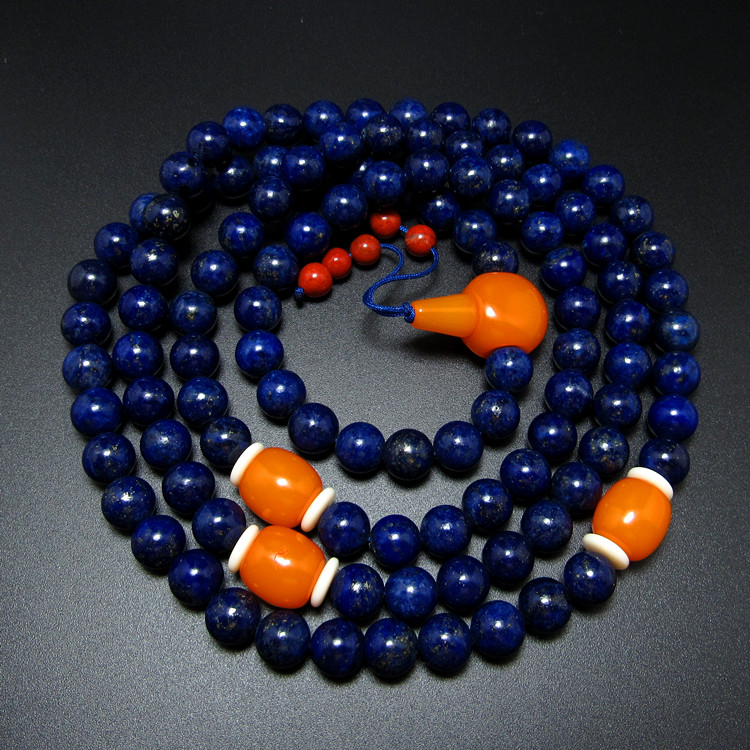 Natural Afghan lapis lazuli emperor green Buddha bead bracelet 108 bracelet with chicken fat yellow glass men's and women's style
