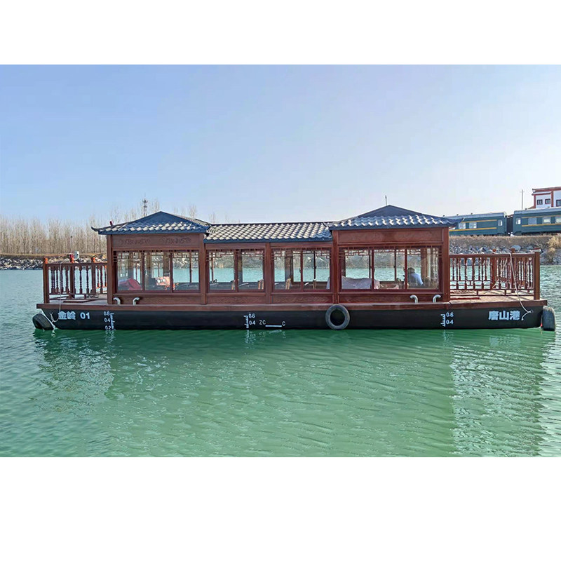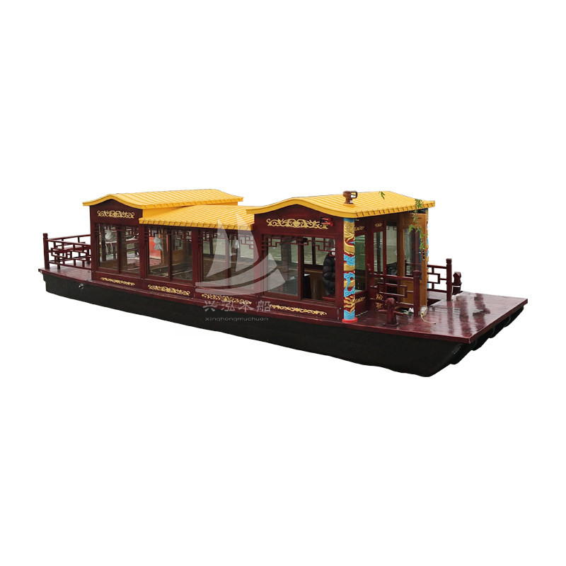 Large Antique Painting Boat Wooden Boat Water Dining Boat Scenic Area Sightseeing Travel Electric Boat Hotel Room Boat Houseboat