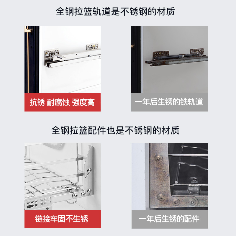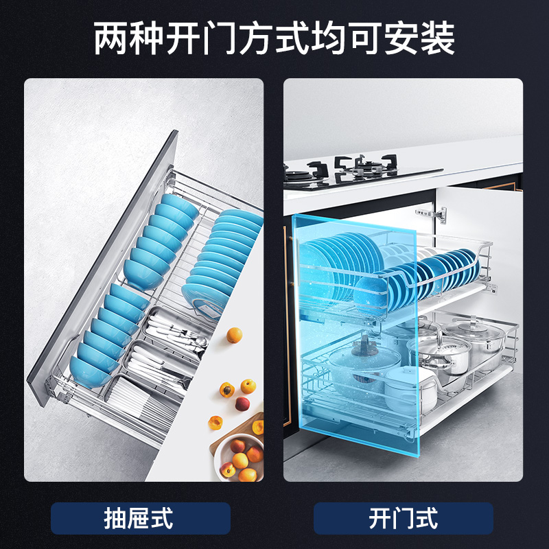 Kitchen overall cabinet pull basket 304 stainless steel double-layer buffer drawer-type bowl basket? Car seasoning storage bowl rack built-in