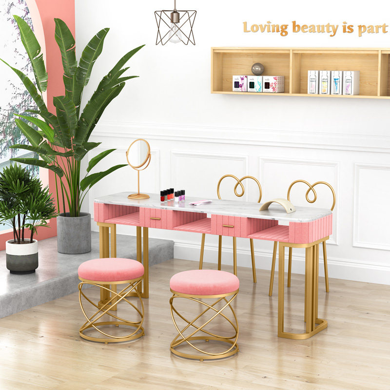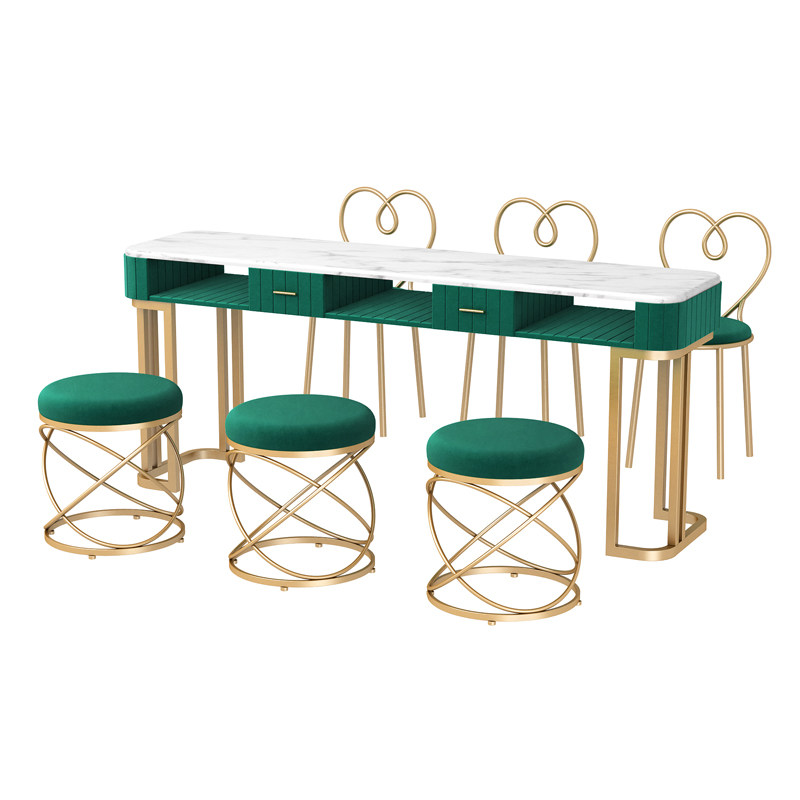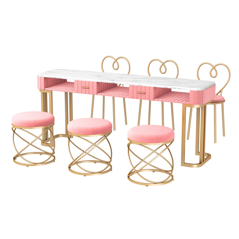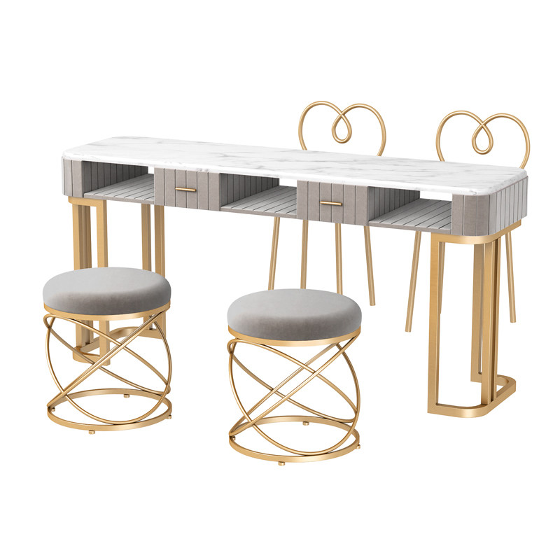 Nordic ins style simple double marble nail table and chair set Single double gold Wrought iron nail manicure table