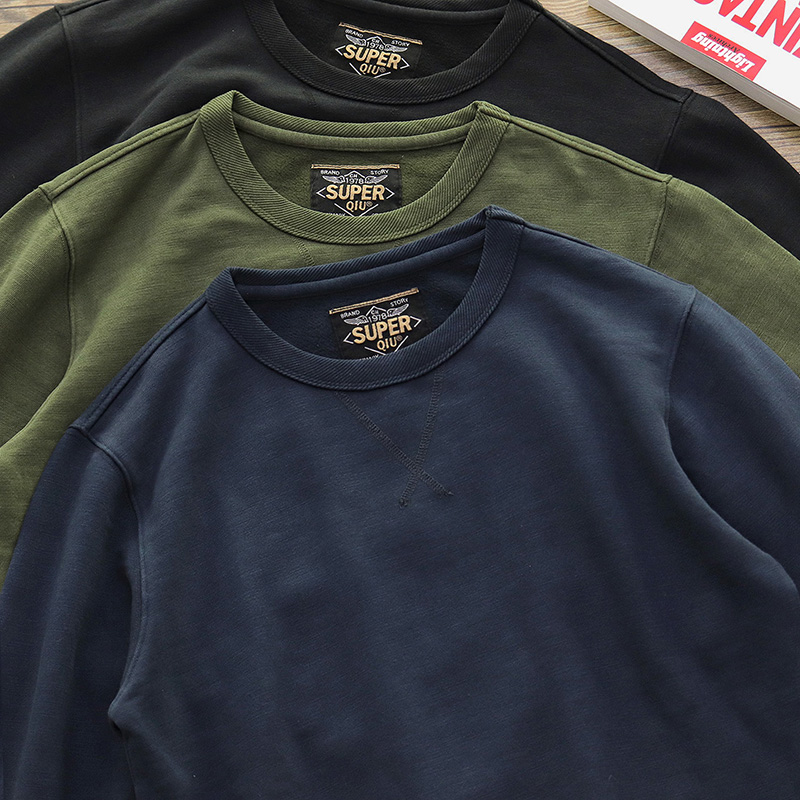 Pure cotton knit jacket male American vintage reworked water washed for old autumn and winter casual round collar warm and velvety coat man