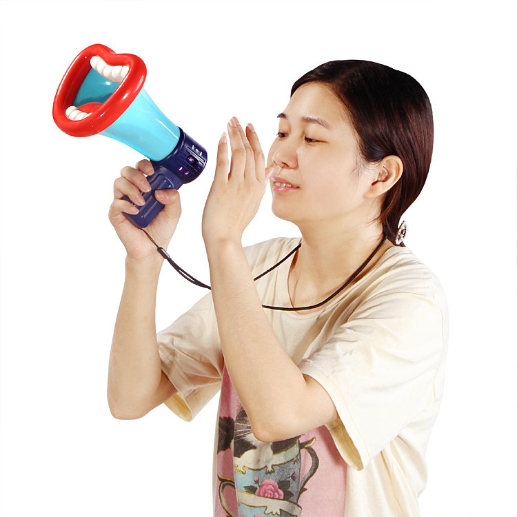 Children's trumpet toy vibrato big lips funny funny amplifier voice changer fun whole person holding microphone