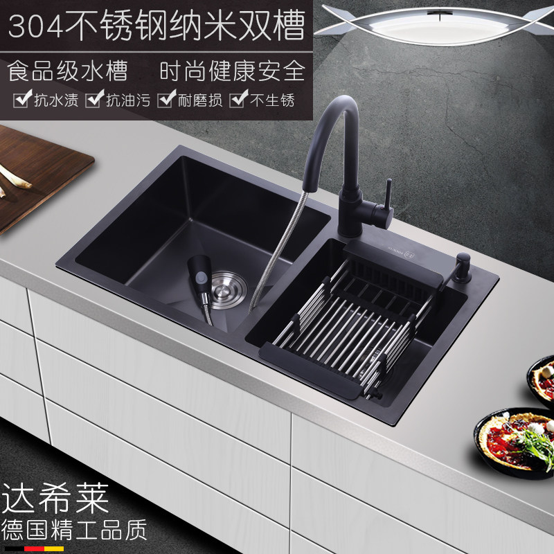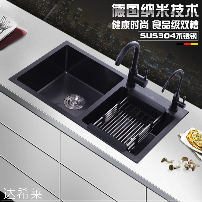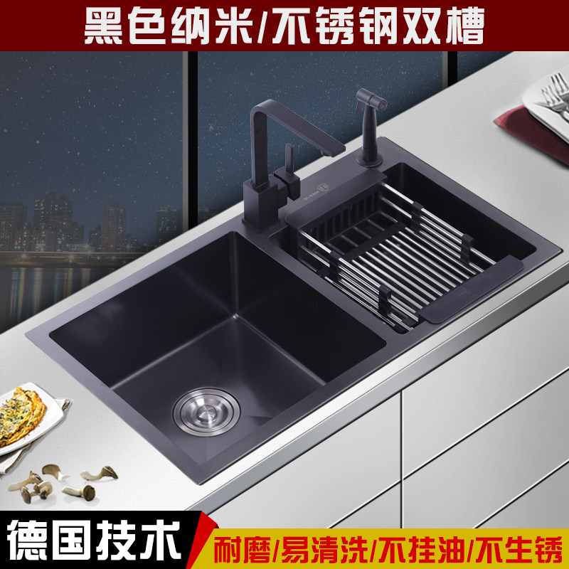 Nano Black Stainless Steel Wash Basin Home Kitchen Handmade Sink Double Sink Thickened Water Basin With Water Purification Dishkeit Pool