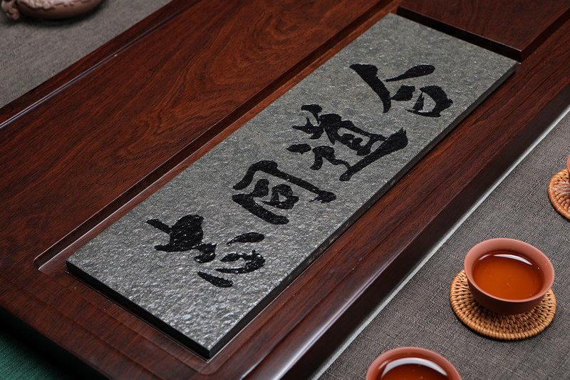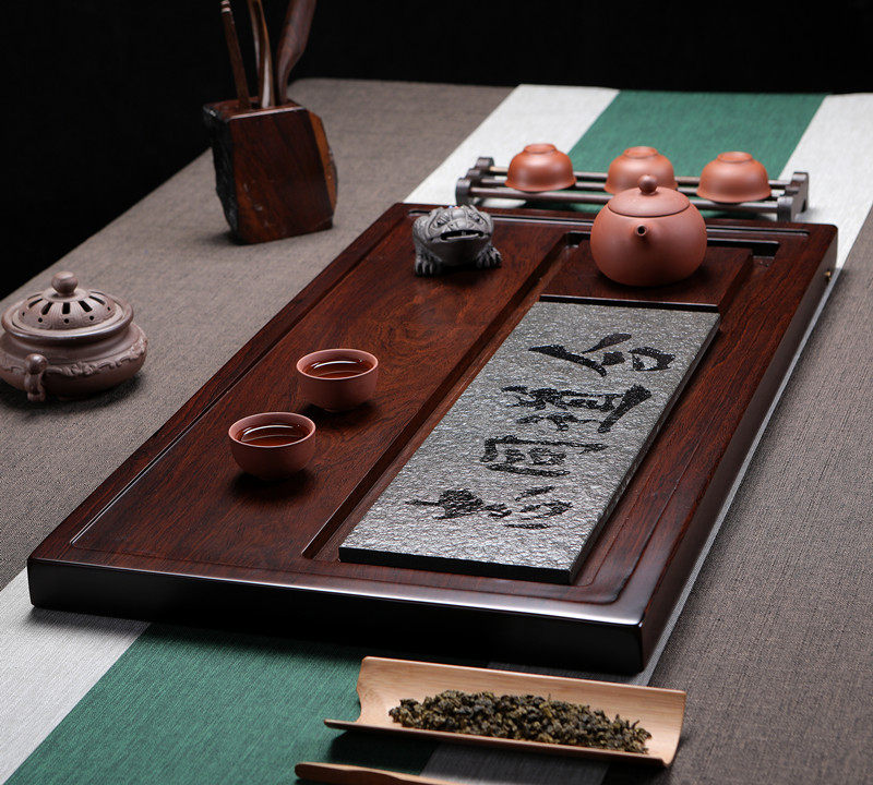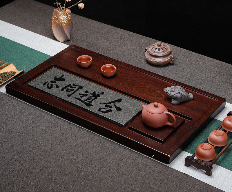 Whole black sandalwood tea tray with urkin stone tea sea tea table rectangular home wood tea tray Gongfu tea depository