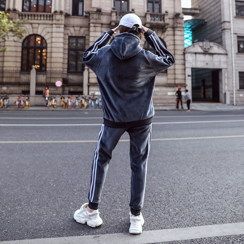 Golden Velvet Hawling Sports Set Female 2022 Fashion and Winter Fashion Leisure Student Ware three pieces