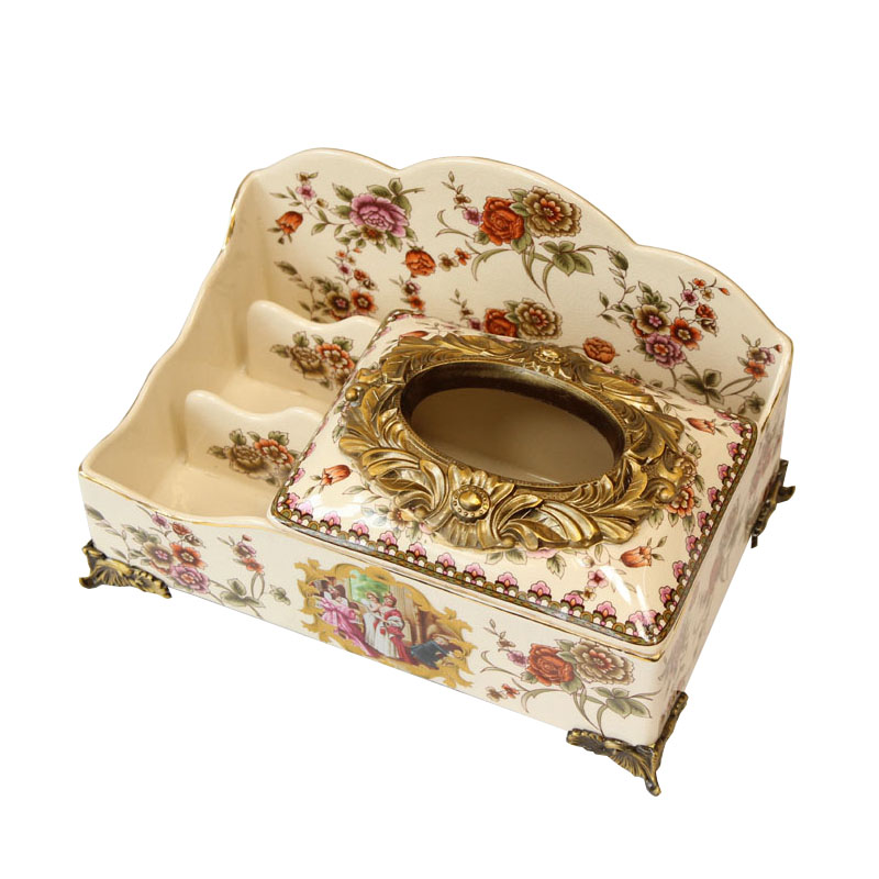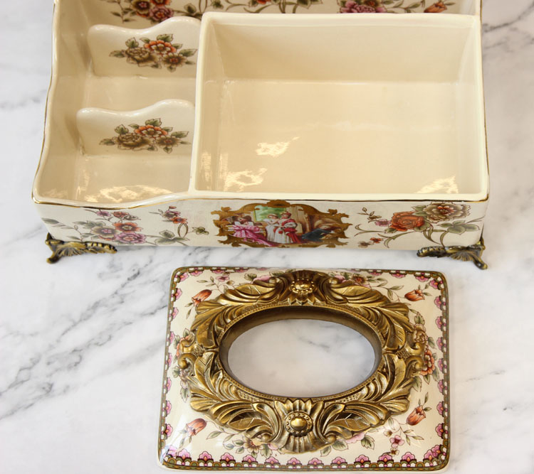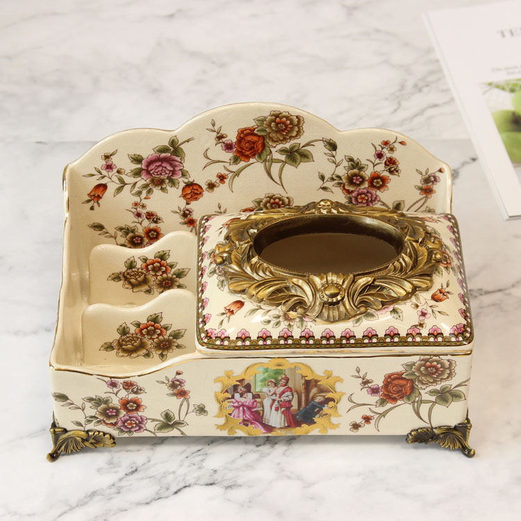 European-style luxury villa model room storage tissue box American-style villa model room ceramic multi-functional toilet paper box