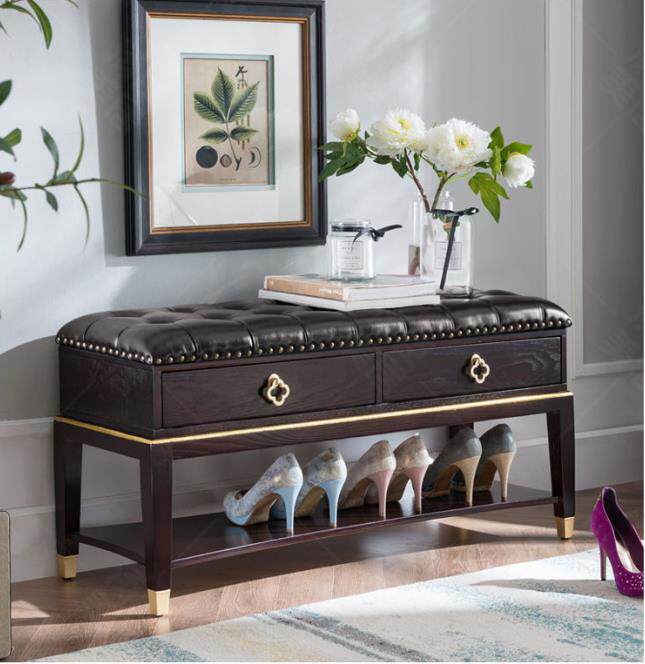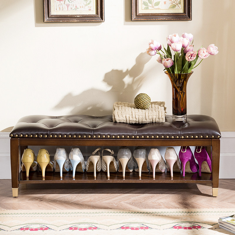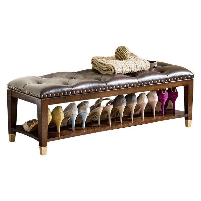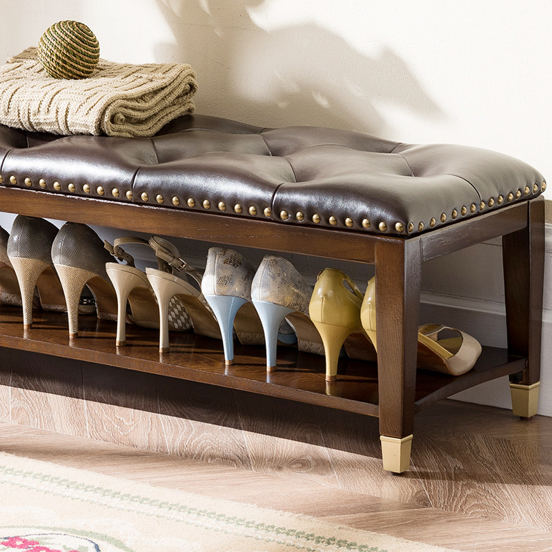 New Chinese-style solid wood shoe stool porch can sit-type shoe stool modern minimalist leather low stool multi-functional shoe rack