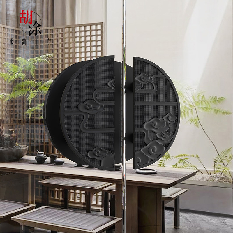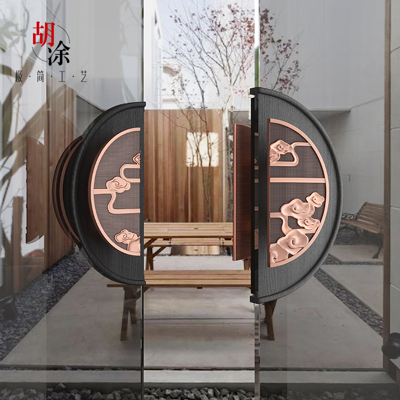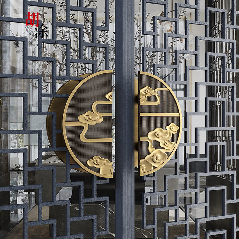 New Chinese glass door handle double switch wood door handle imitation ancient copper pair with numerical control relief cloud big door handle customized